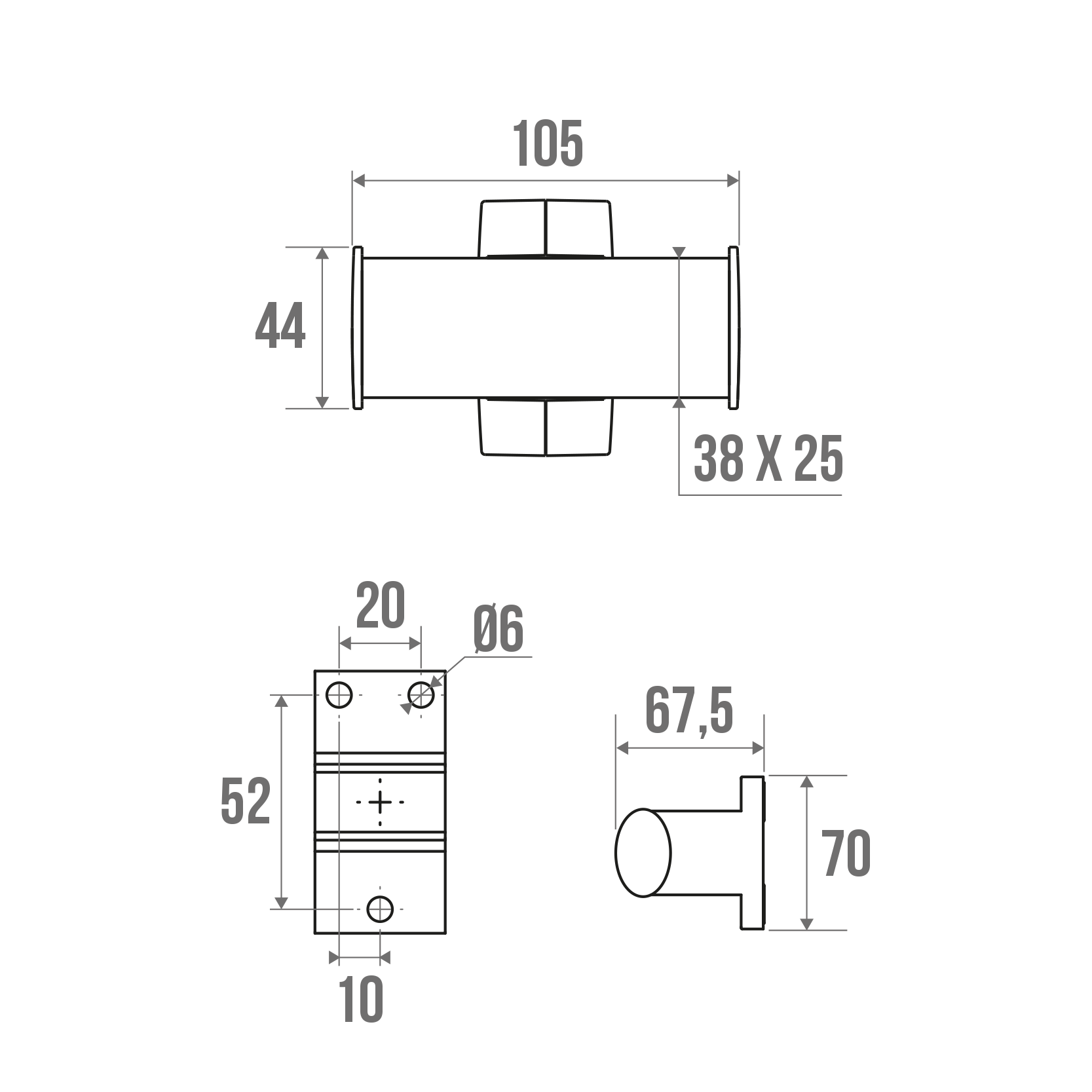 The bathrobe holder is available in 1 head, with an anthracite synthetic resin tip or in 2 heads.