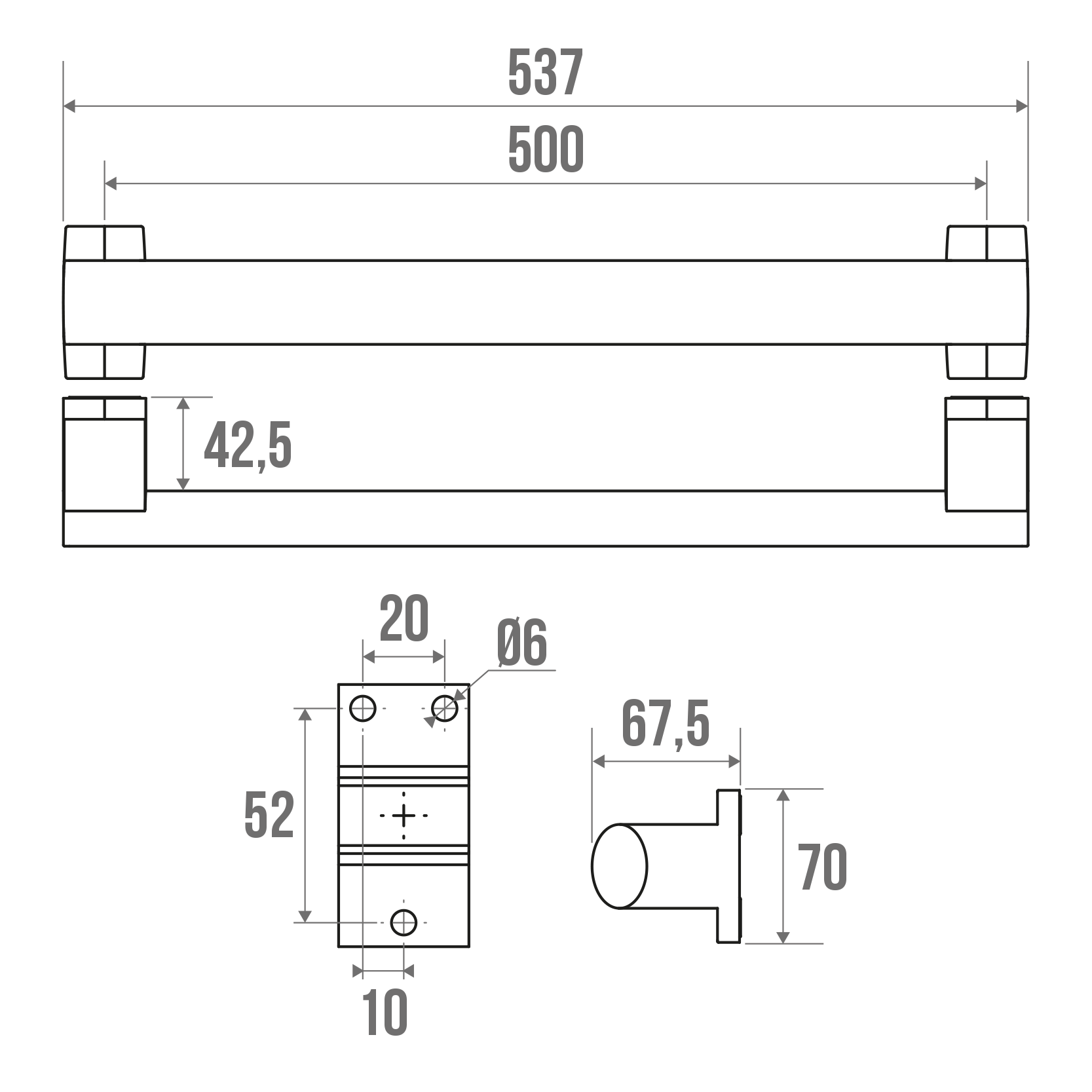 ARSIS straight bars are available in several sizes and colours and can be combined with ARSIS shower seats.
