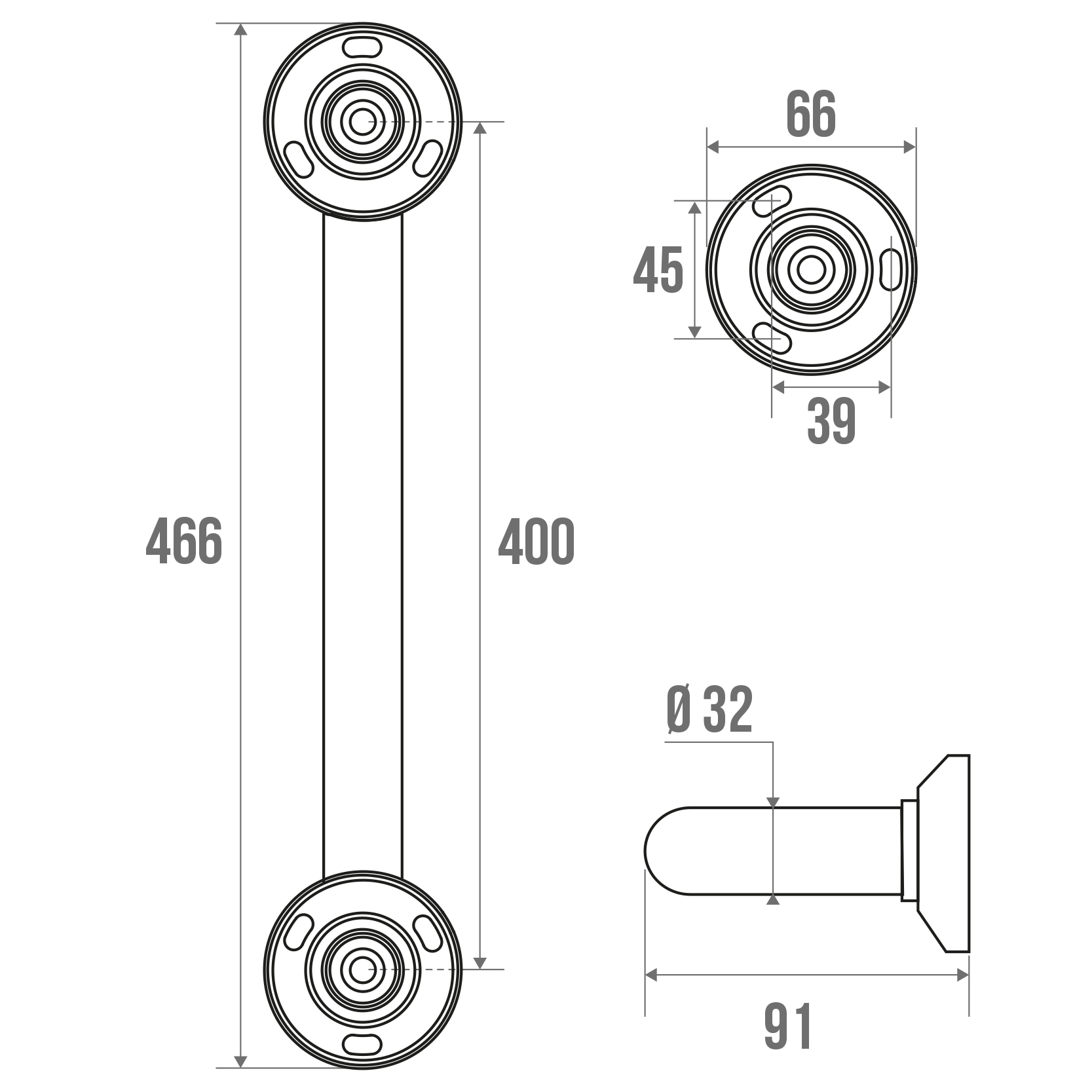 The 32 mm diameter mirror-polished chrome-plated brass grab bar can be installed in a shower or bathtub area. It can be positioned vertically, horizontally or 135°.