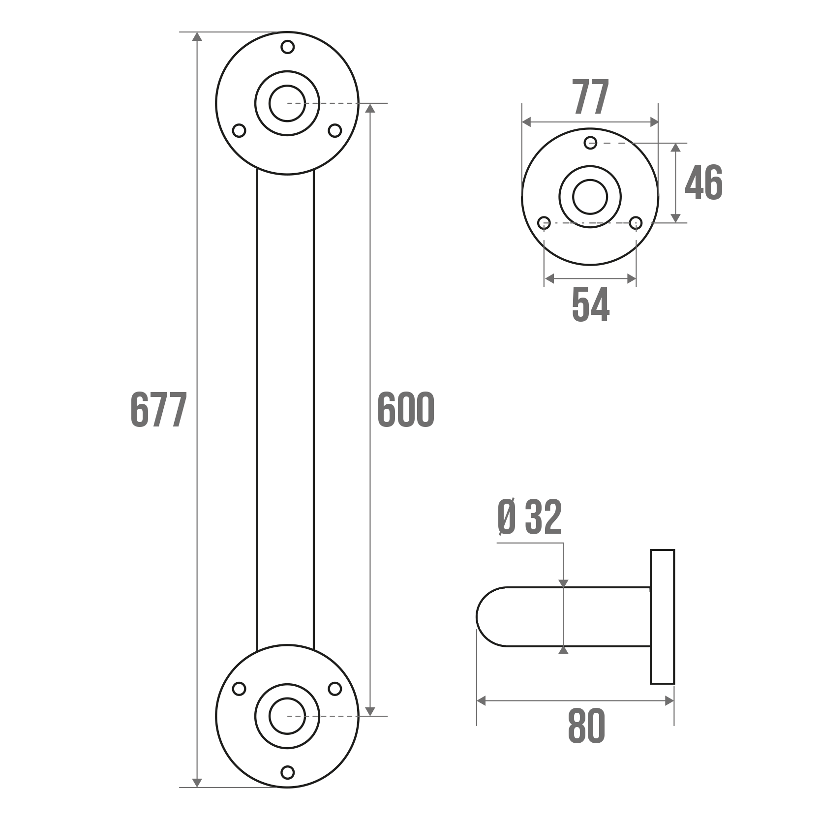 The 32 mm diameter polished stainless steel grab bar can be installed in a shower or bathtub area. It can be positioned vertically, horizontally or 135°.