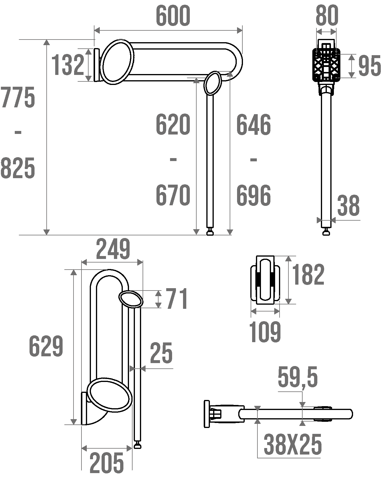 The ARSIS aluminium lift-up bar with support stand can be installed in the toilet.