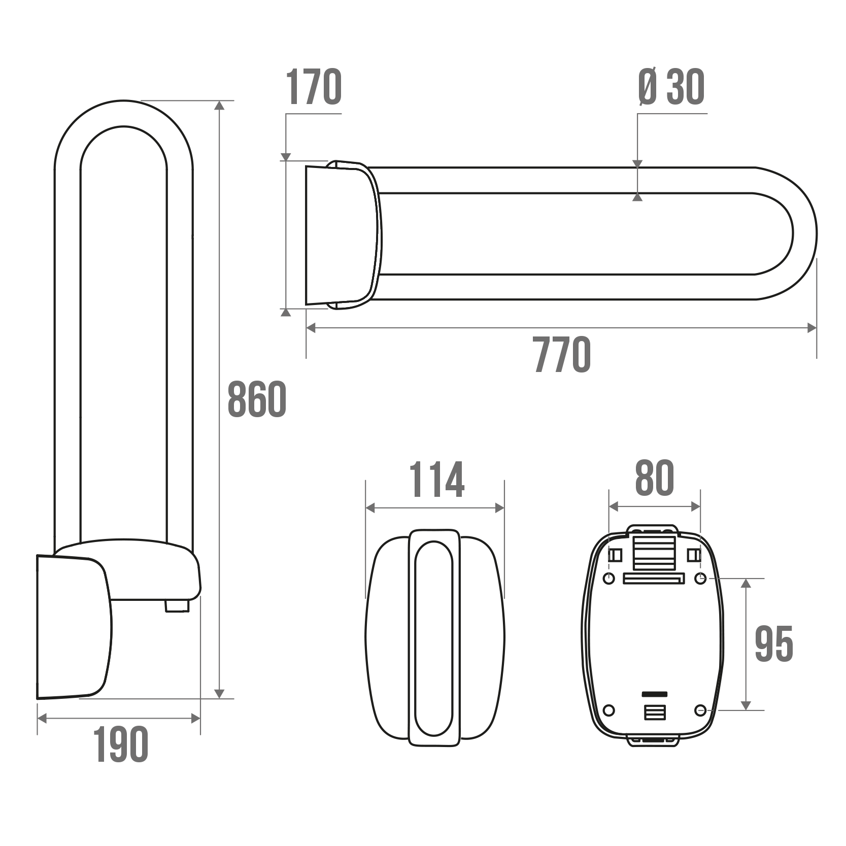 The brushed stainless steel lift-up bar can be installed in the toilet. It locks in an upright position.