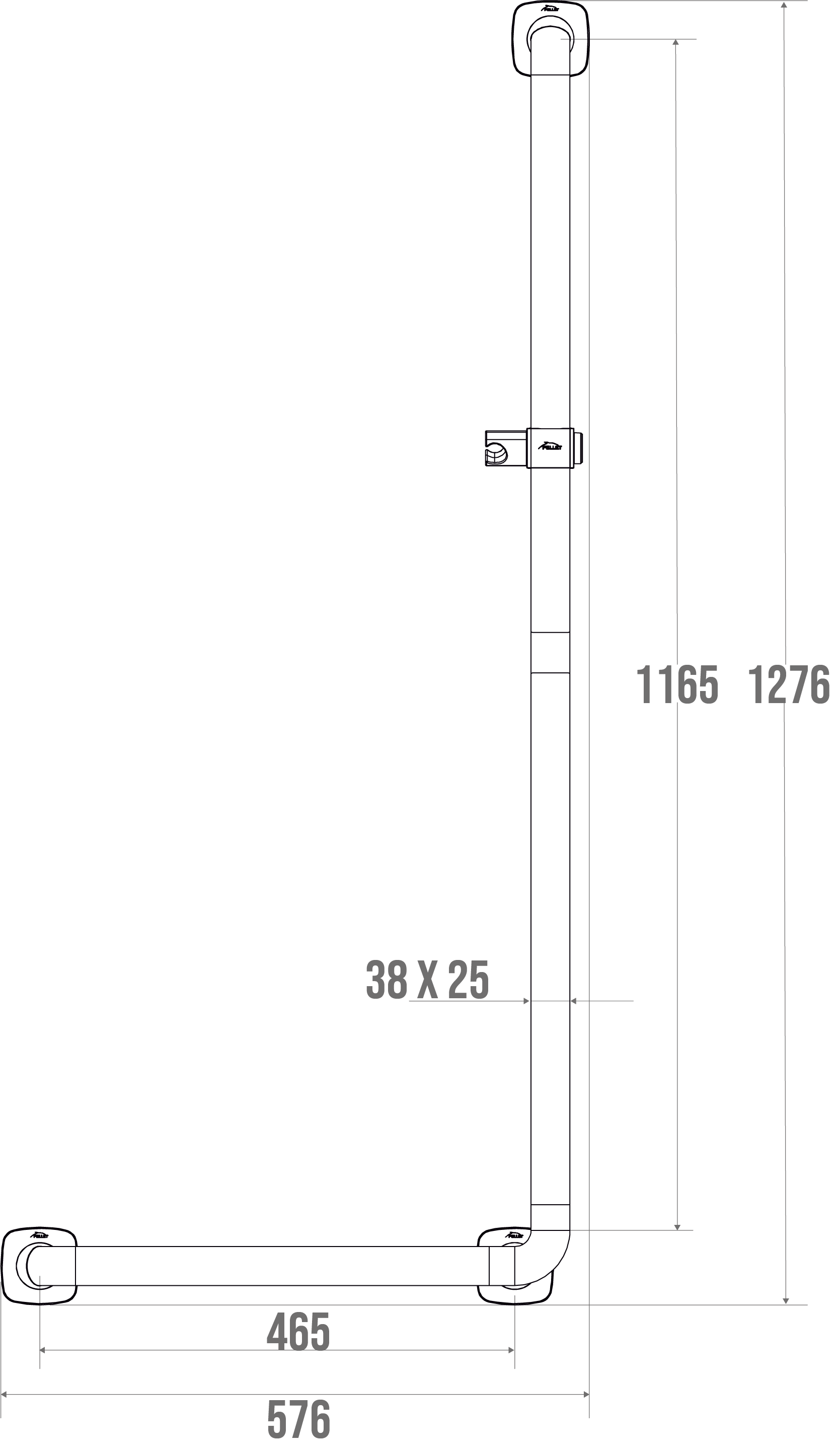 This bar is available in a right or left version and includes a pull-out shower holder.