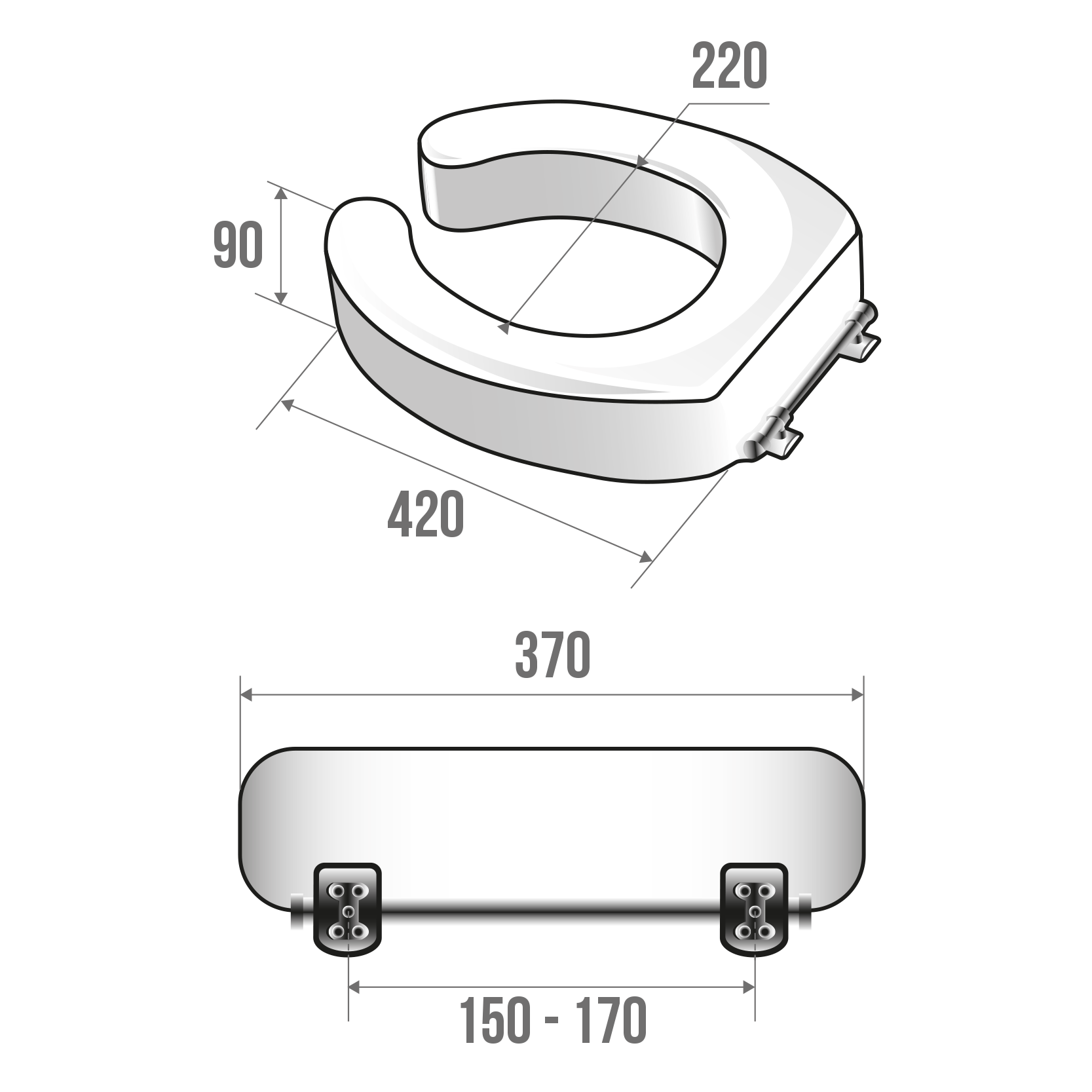 Elle est dotée de fixations invisibles de 4 mm et d'un entraxe de fixations allant de 150 à 170 mm, cette réhausse est la solution idéale pour une utilisation confortable des toilettes. Elle permet de faciliter les transferts assis-debout en surélevant l'assise de plusieurs centimètres.