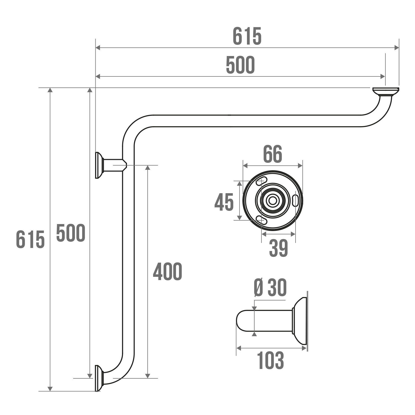 Elle permet à la fois de franchir la marche d'un receveur ou le rebord d'une baignoire, de se maintenir en équilibre en position debout ou assise, de se relever et d'effectuer un transfert d'un support à un autre. Cette barre est réversible et livrée démontée.