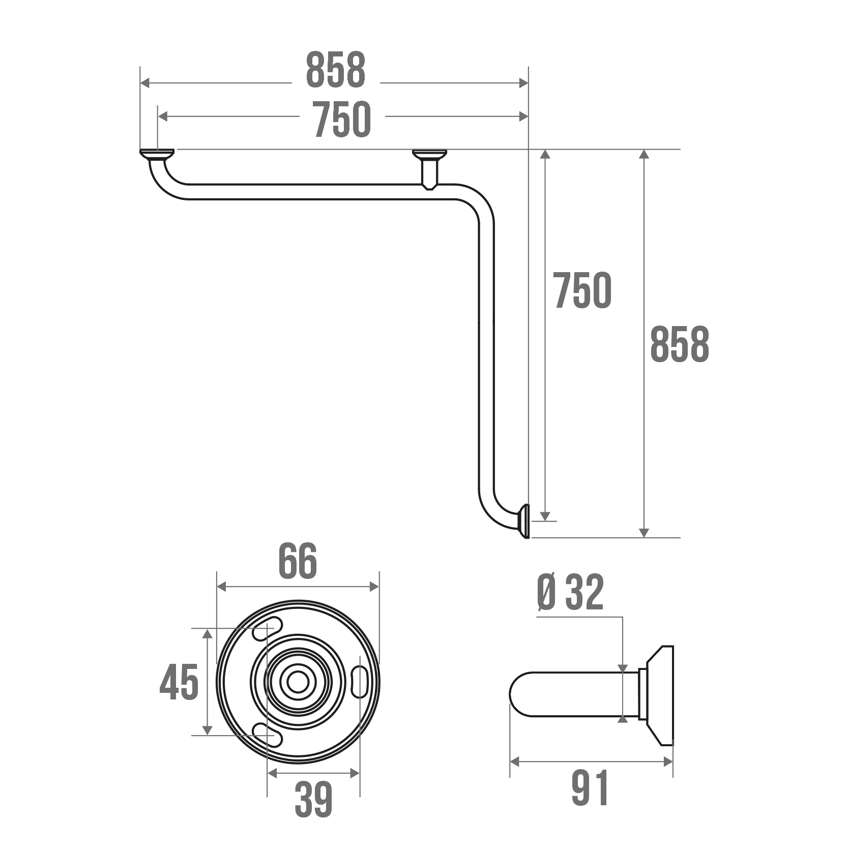 Barre angle 2 murs Ø 32 mm