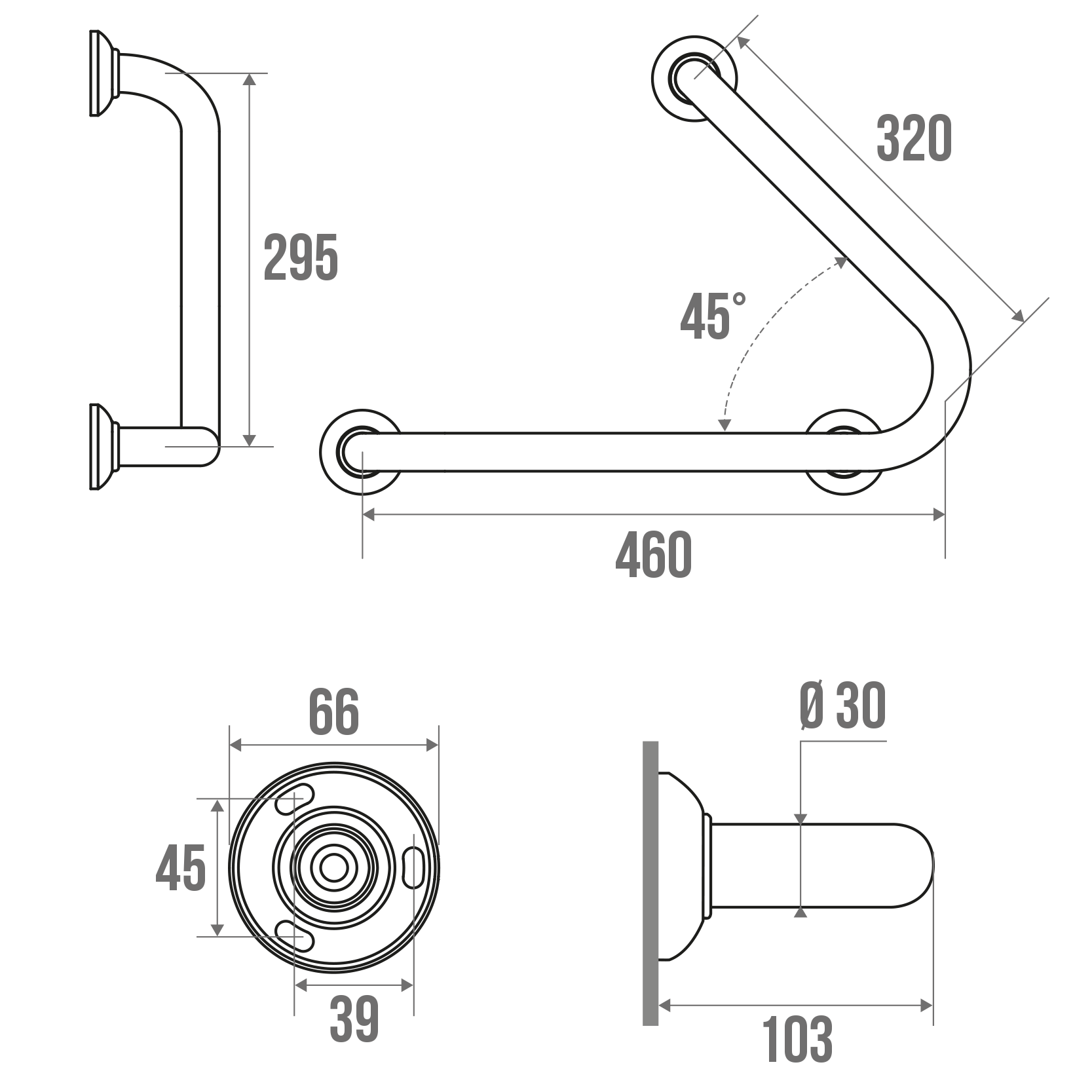 La barre coudée 45° CLASSIC diamètre 30 mm en aluminium époxy blanc s'installe dans les urinoirs.