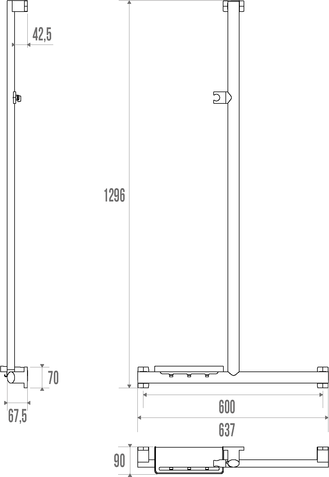 Elle est vendue avec une tablette de douche qui se fixe à l'aide de crochets et de 2 supports douchette rotatifs (un fixe et un coulissant).