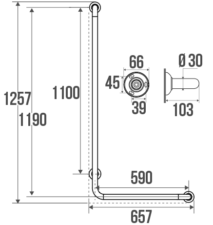 Cette barre existe en Droite ou gauche et inclut un support douchette coulissant.