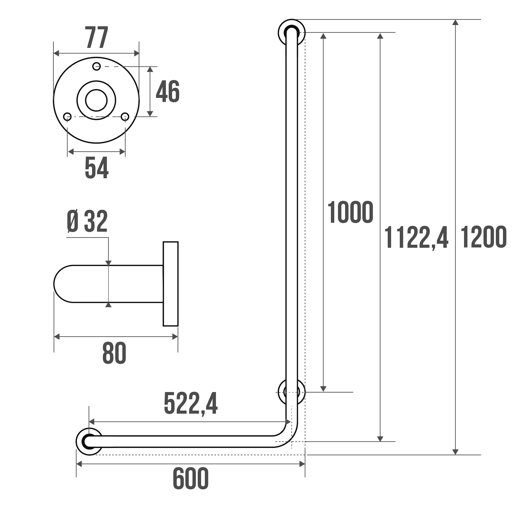 La barre en L en inox poli brillant diamètre 32 mm 3 points de fixation s'installe principalement dans un espace douche.