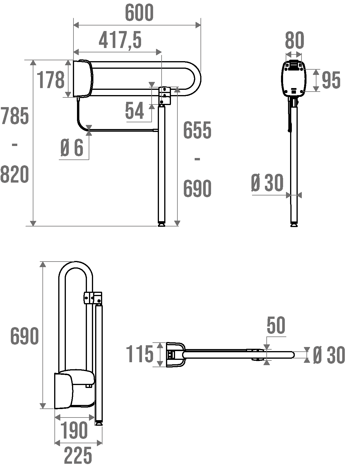 Ø 30 mm. Réglable en hauteur.