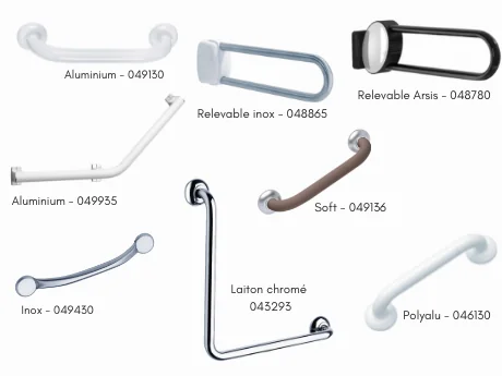 Escamotable avec béquille automatique. Déclipsable et interchangeable avec la tablette de douche.