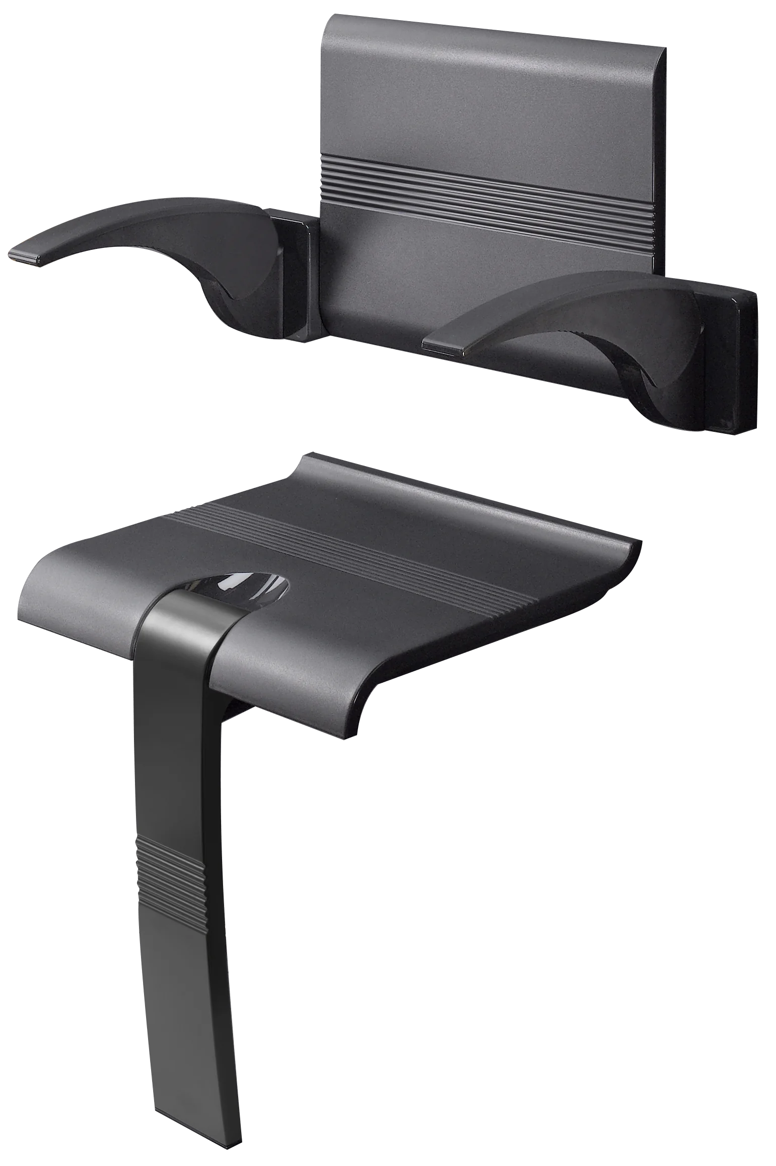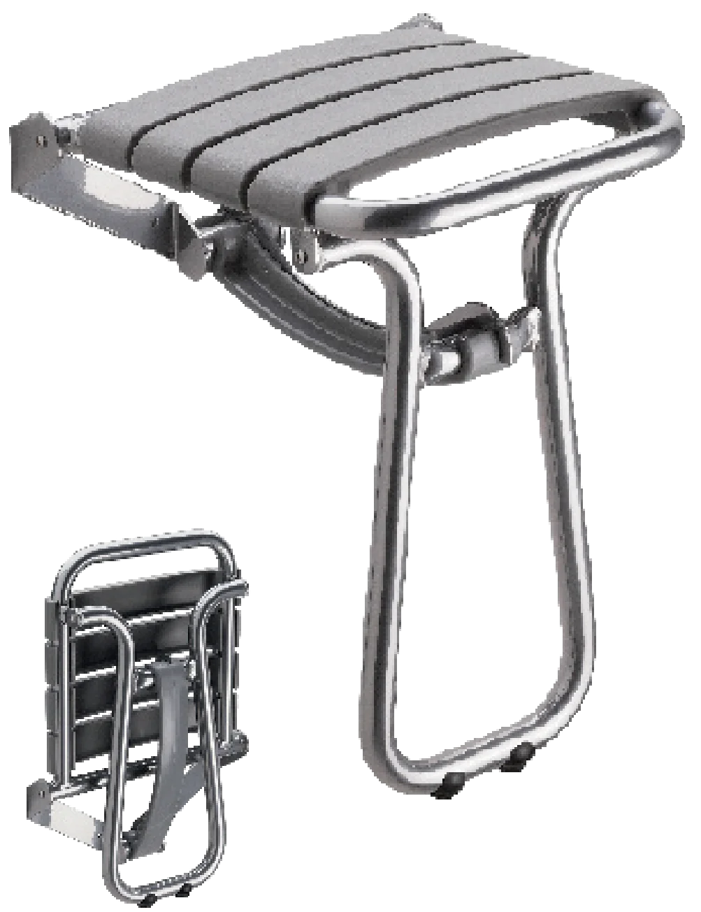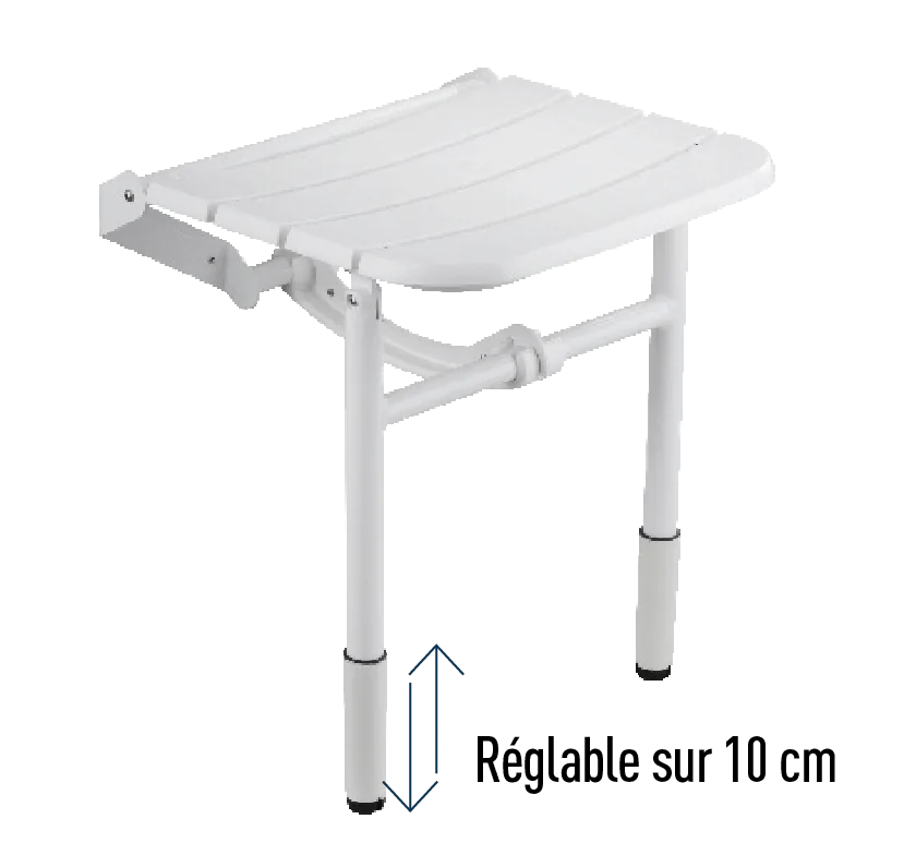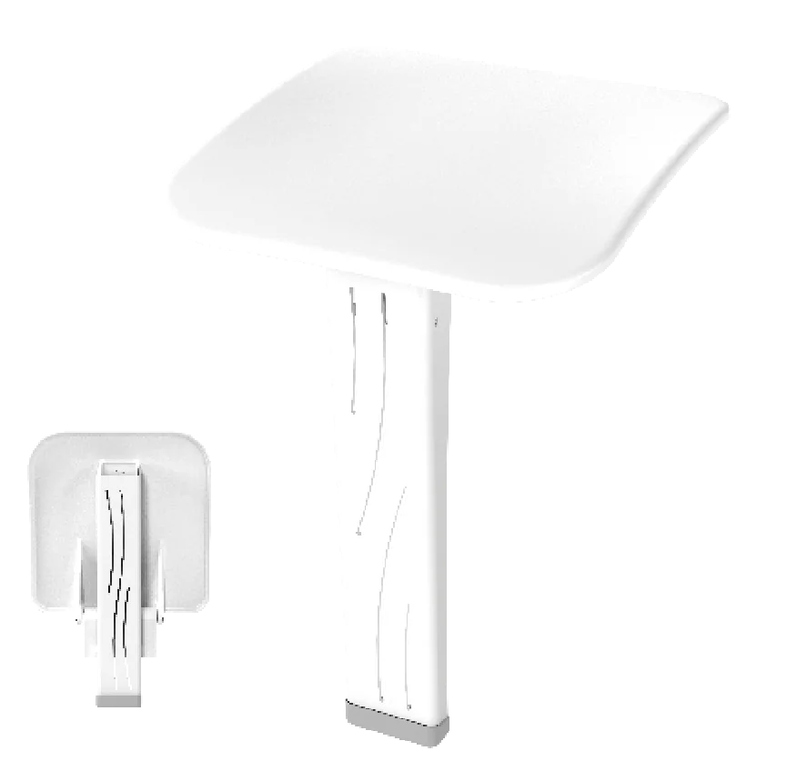 Escamotable avec béquille automatique. Déclipsable et interchangeable avec la tablette de douche.