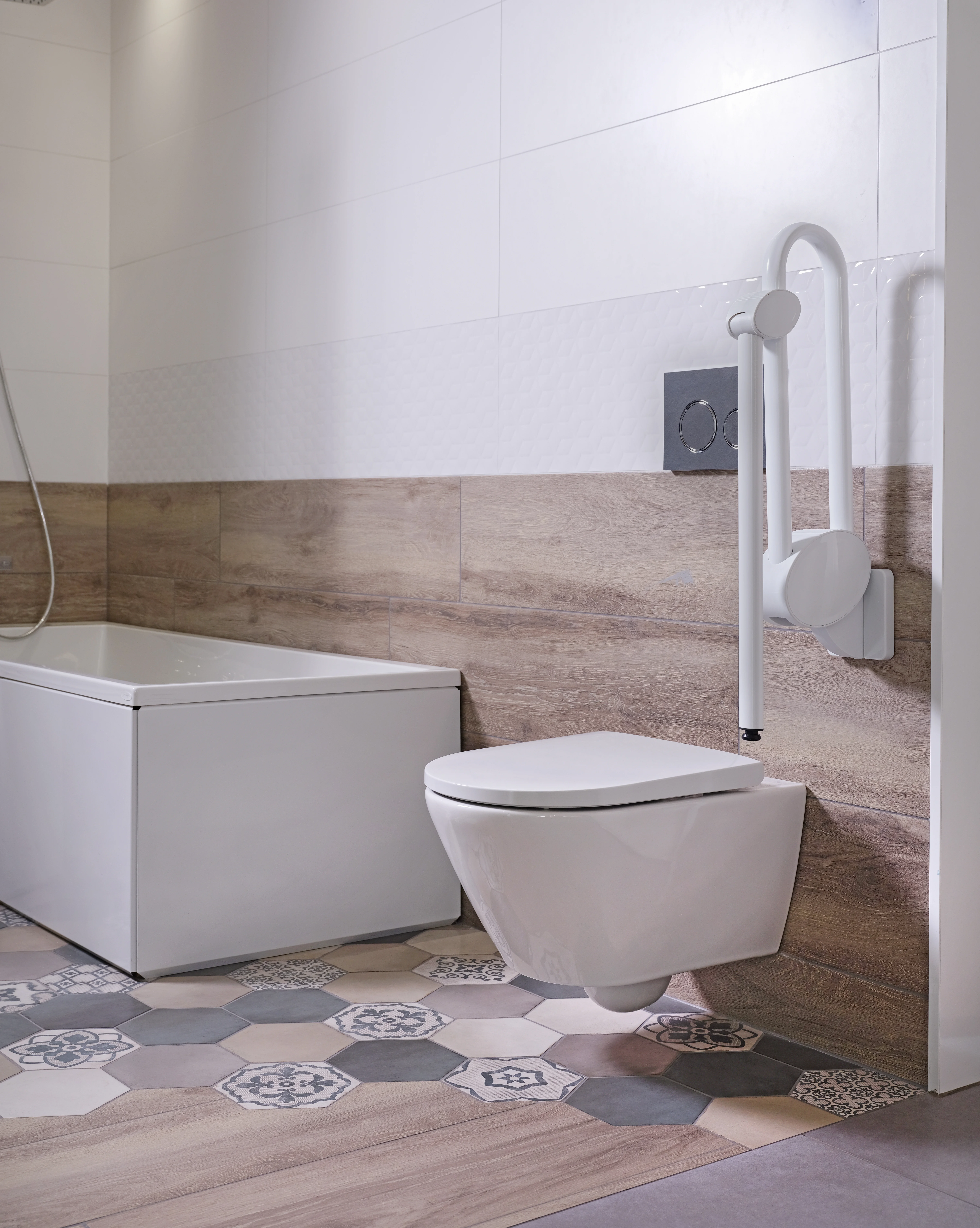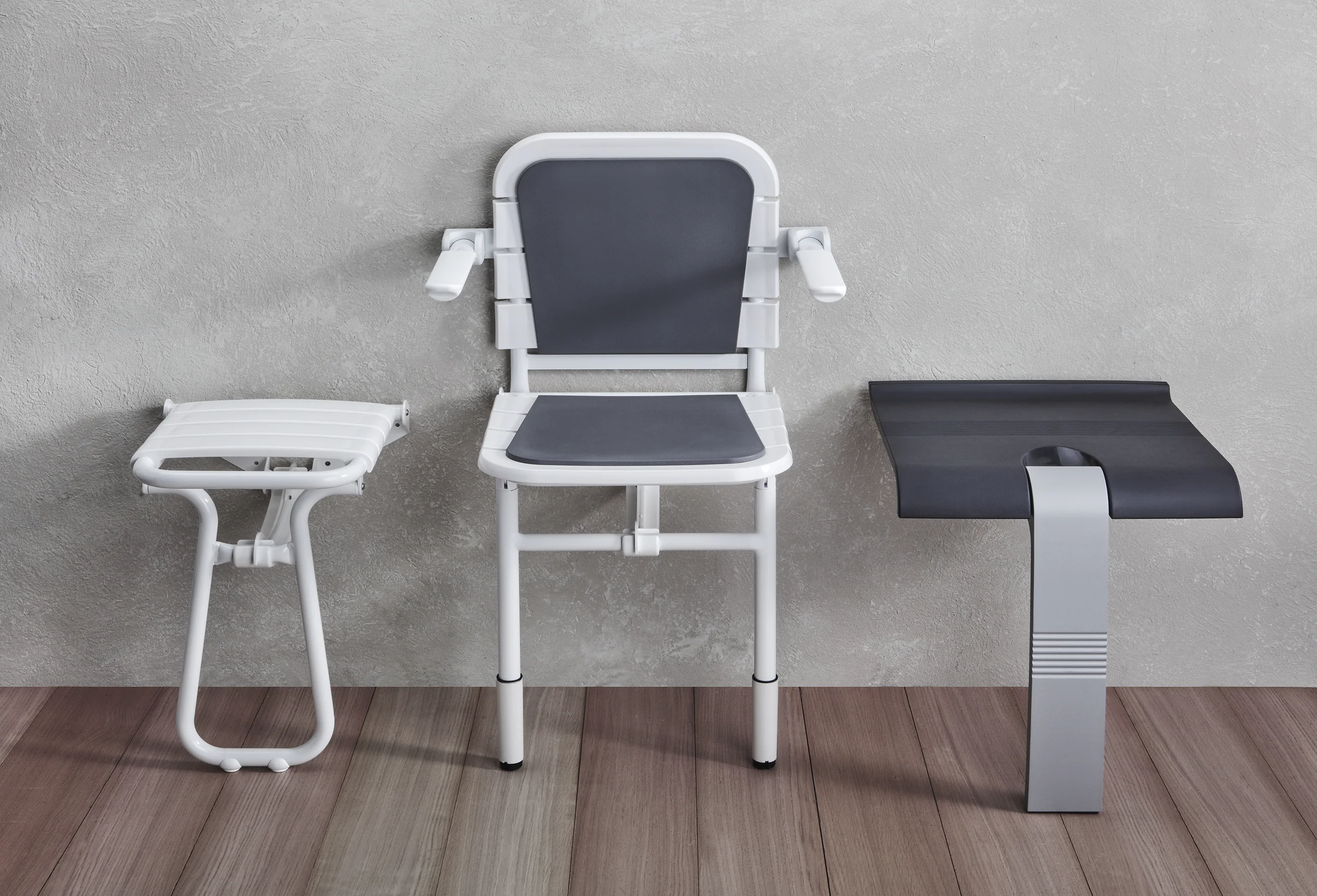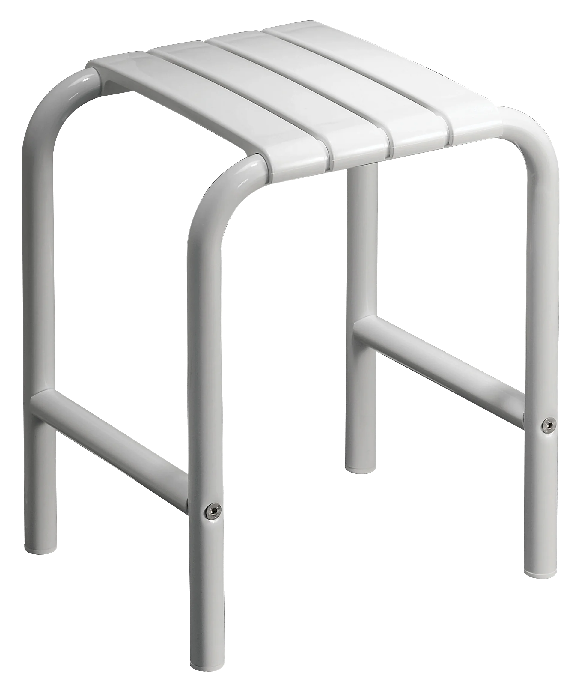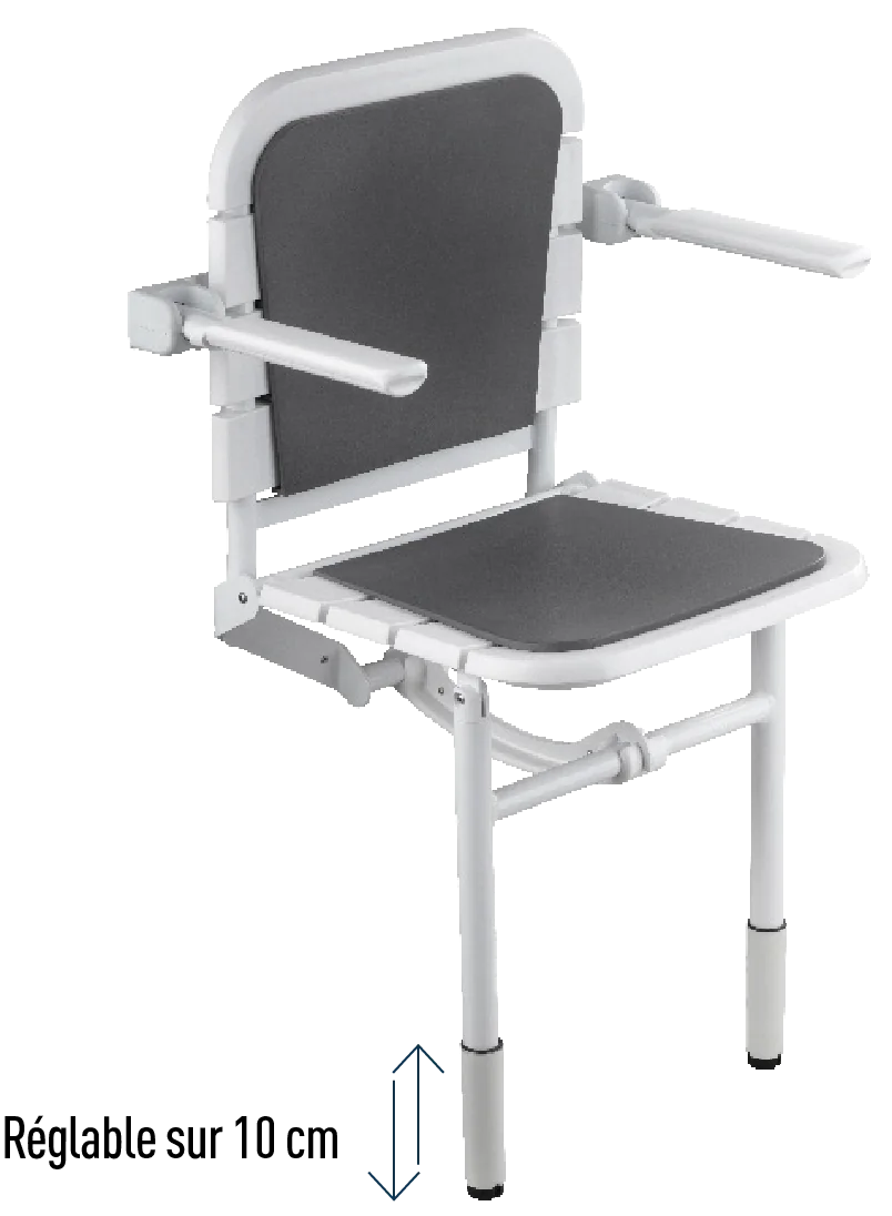 Escamotable avec béquille automatique. Déclipsable et interchangeable avec la tablette de douche.