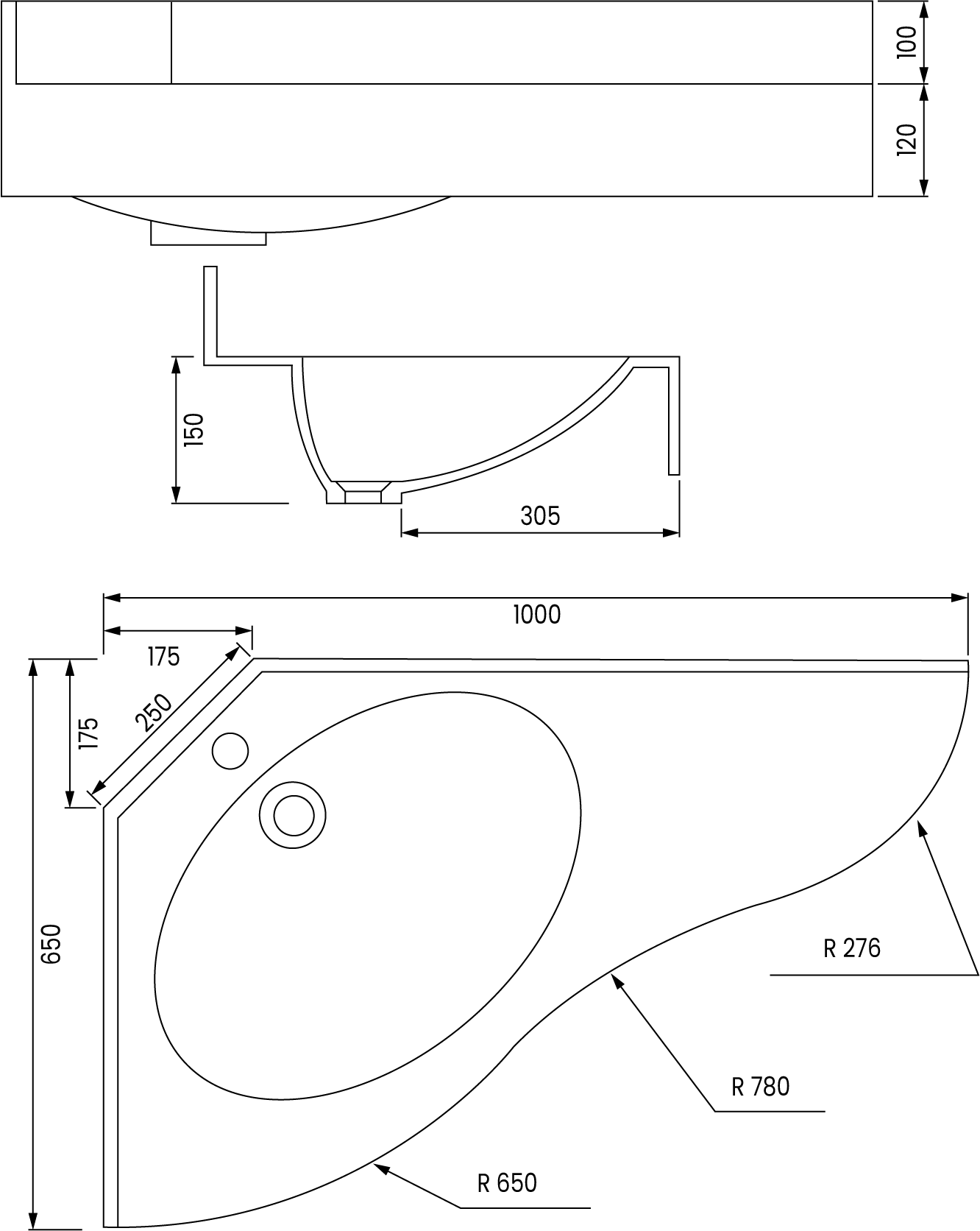 Ce plan vasque peut être livré avec un trou centré ou côté pointe pour la robinetterie ou sans trou, selon vos préférences (à définir lors de la commande).
