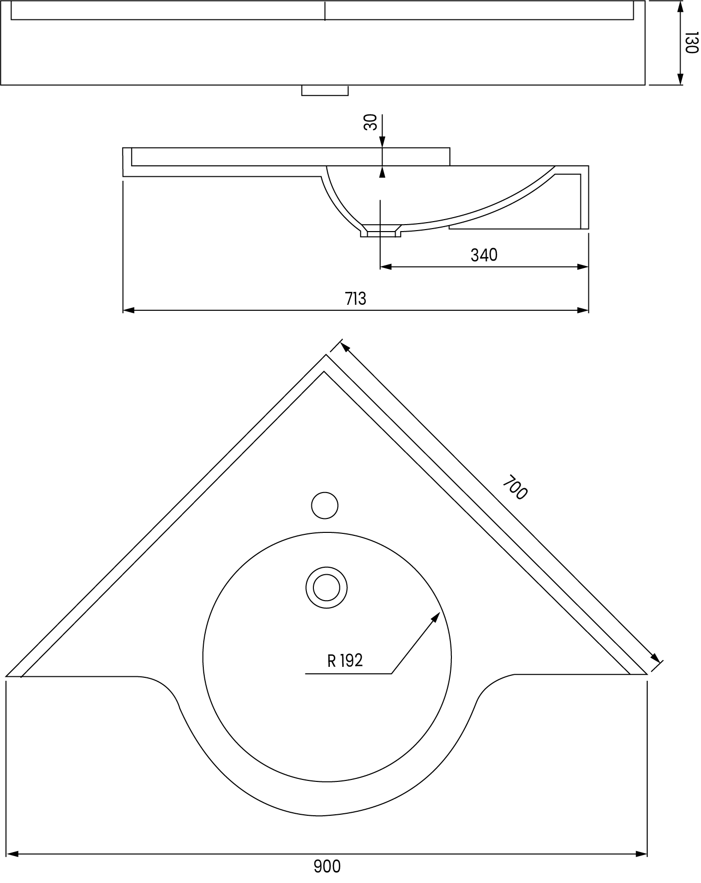 Ce plan vasque est disponible avec ou sans trop-plein et peut être livré avec un trou au centre, à droite ou à gauche pour la robinetterie ou sans trou, selon vos préférences (à définir lors de la commande).