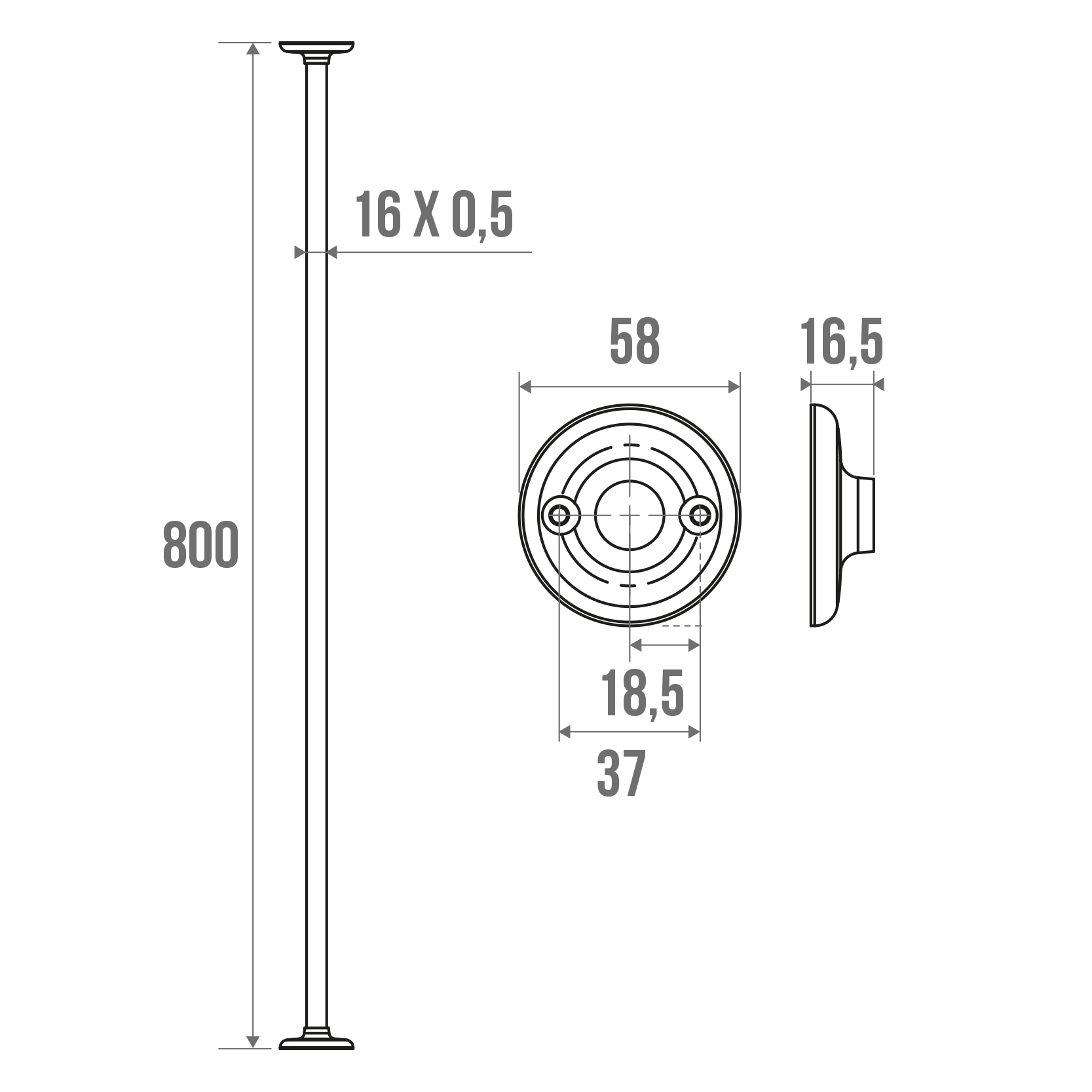 Porte-rideaux droit 2 embases coulissantes