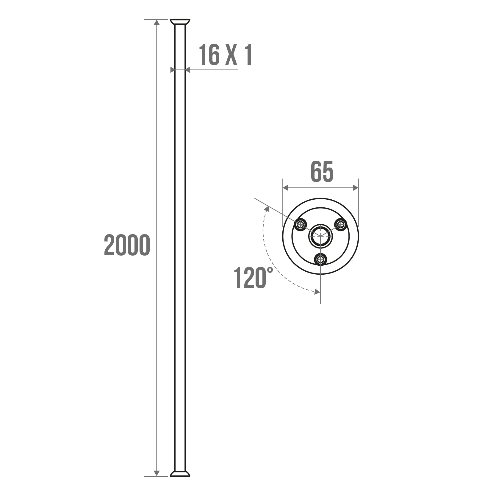 Porte-rideaux droit 2 embases coulissantes