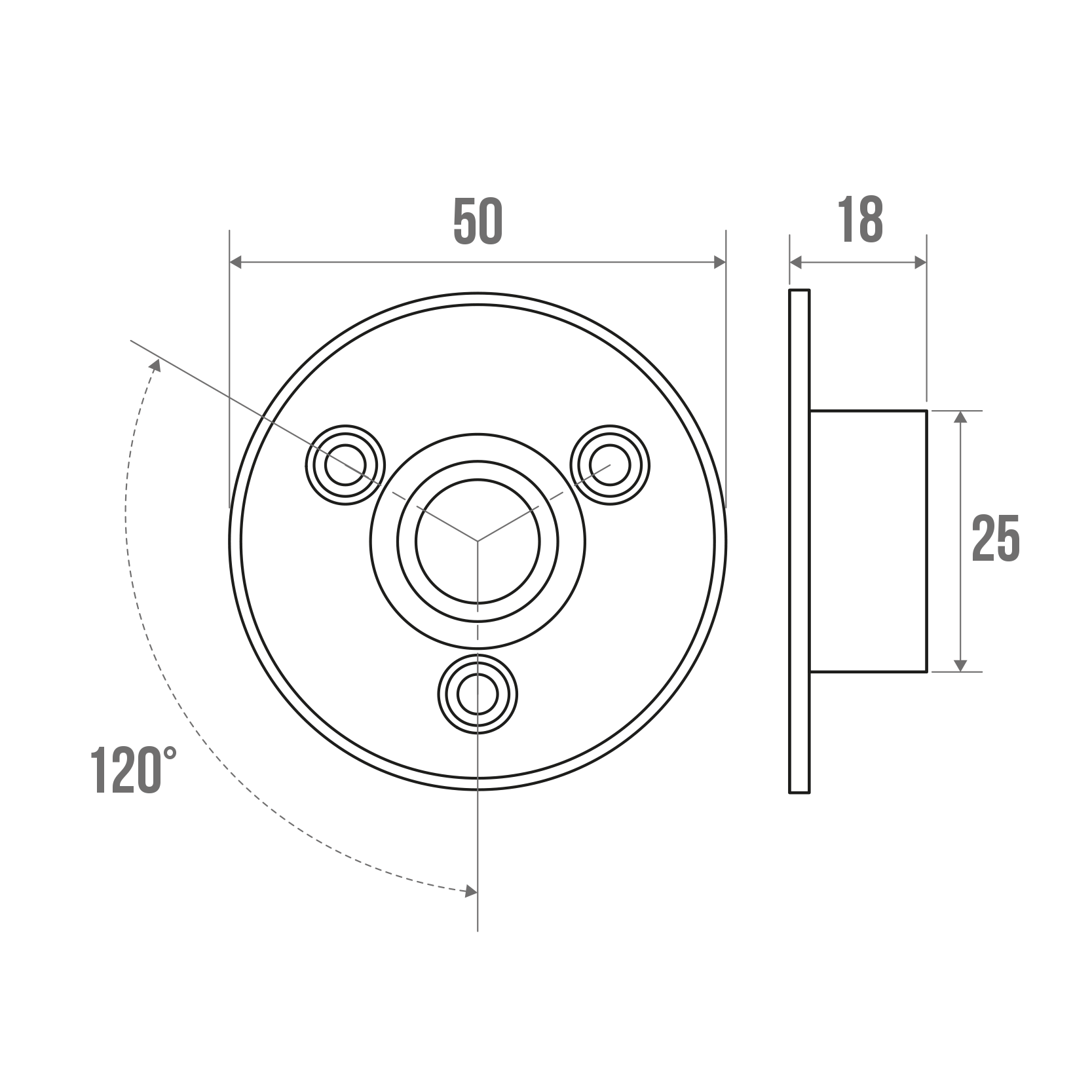 Zamak. Pour porte-rideaux d'angle et droit Ø 20 mm. Fixations visibles.