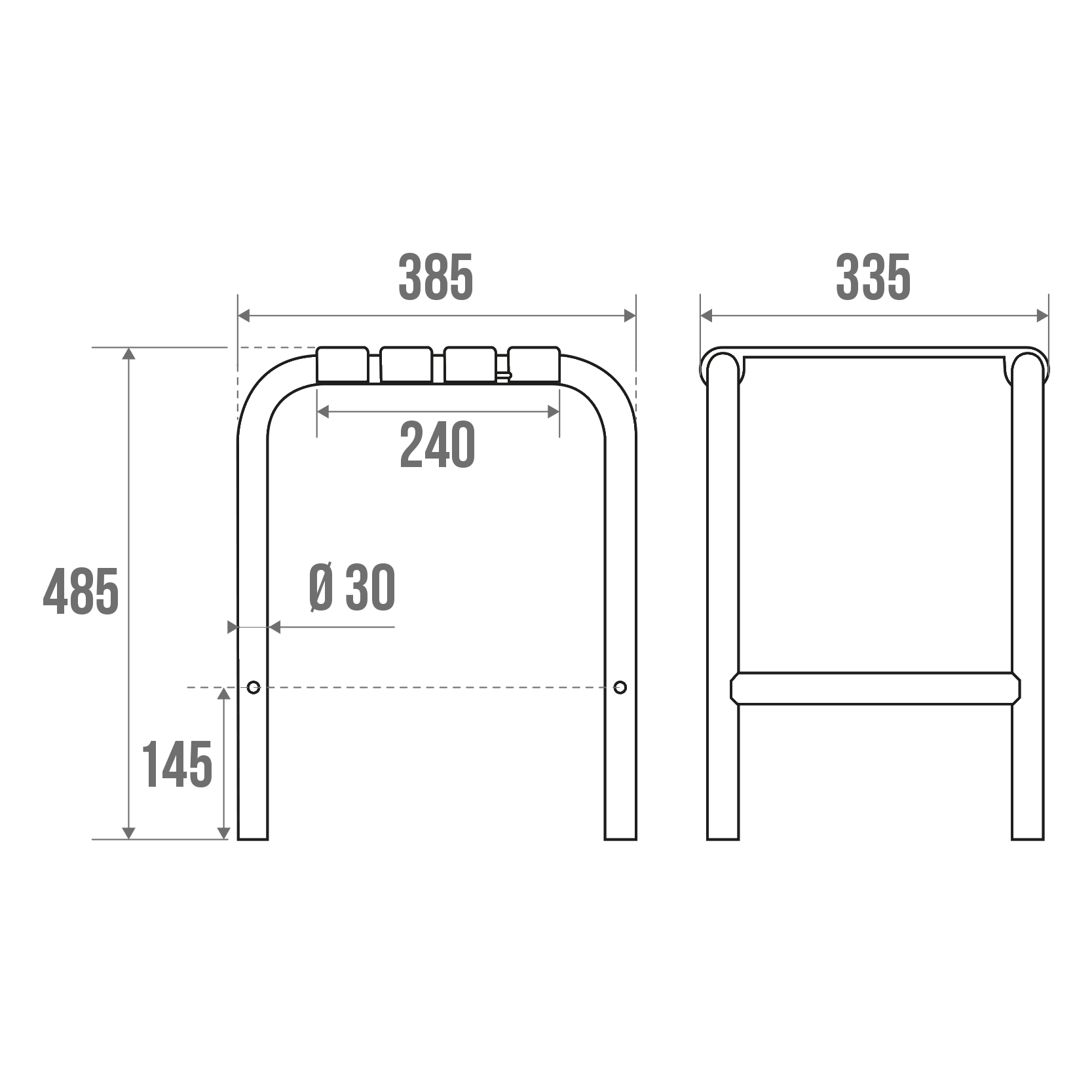 Les pieds sont en aluminium avec 4 patins en plastique anti-dérapant.